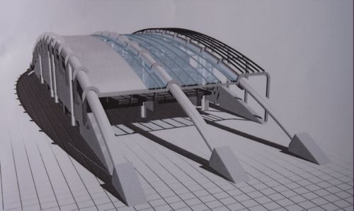 2. Wyburzenie istniejącego na terenie Bulwaru budynku (baraku) klubu wodnego L.O.K. i w jego miejsce wybudowanie nowego, informacyjno-rekreacyjnego Budynku Sportów Wodnych wraz z tarasem, umieszczonego na słupach o konstrukcji żelbetowej monolitycznej z elementami stalowymi, o następujących gabarytach: