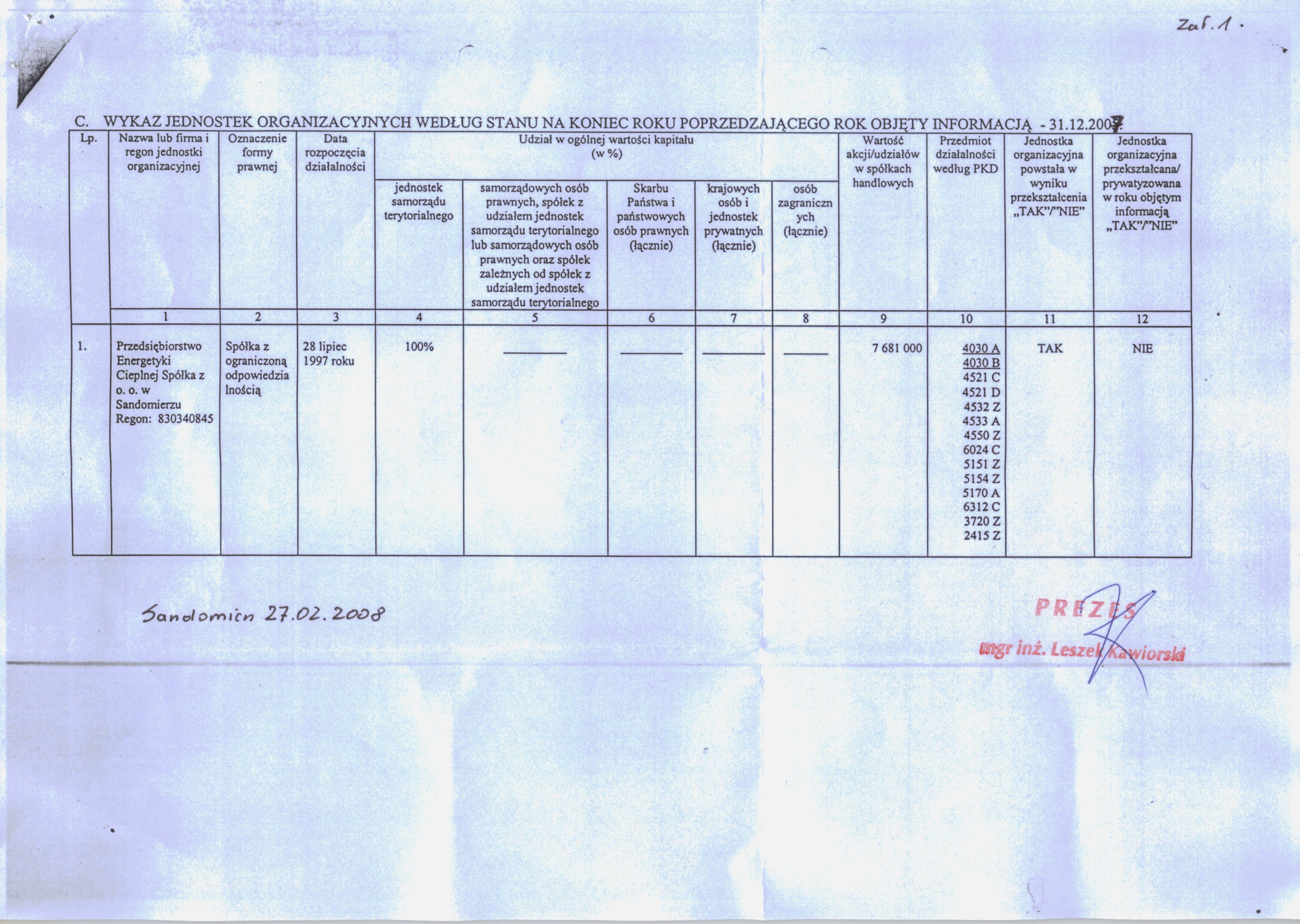 Status prawny/ forma prawna: spółka prawa handlowego /spółka z o.o. Gminy Sandomierz...więcej w [pobierz]