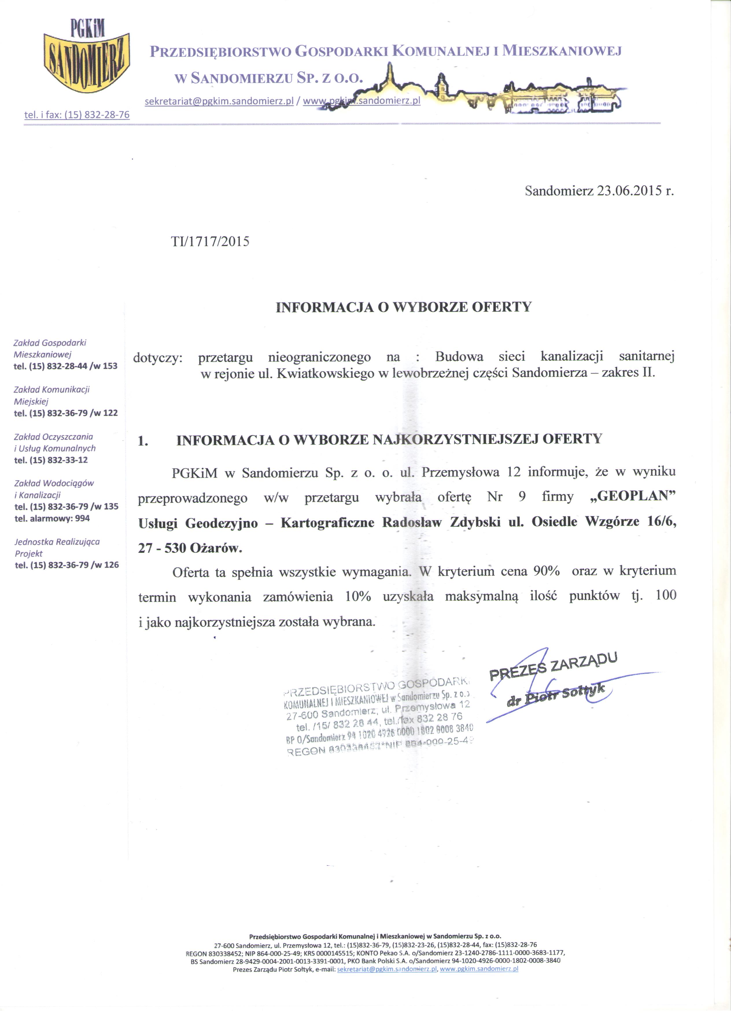 Informacja zatwierdzona przez wp dnia 23.06.2015